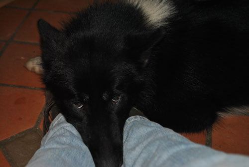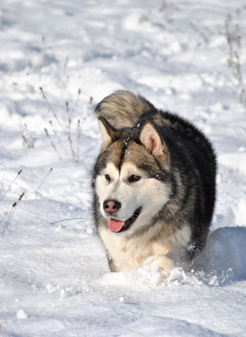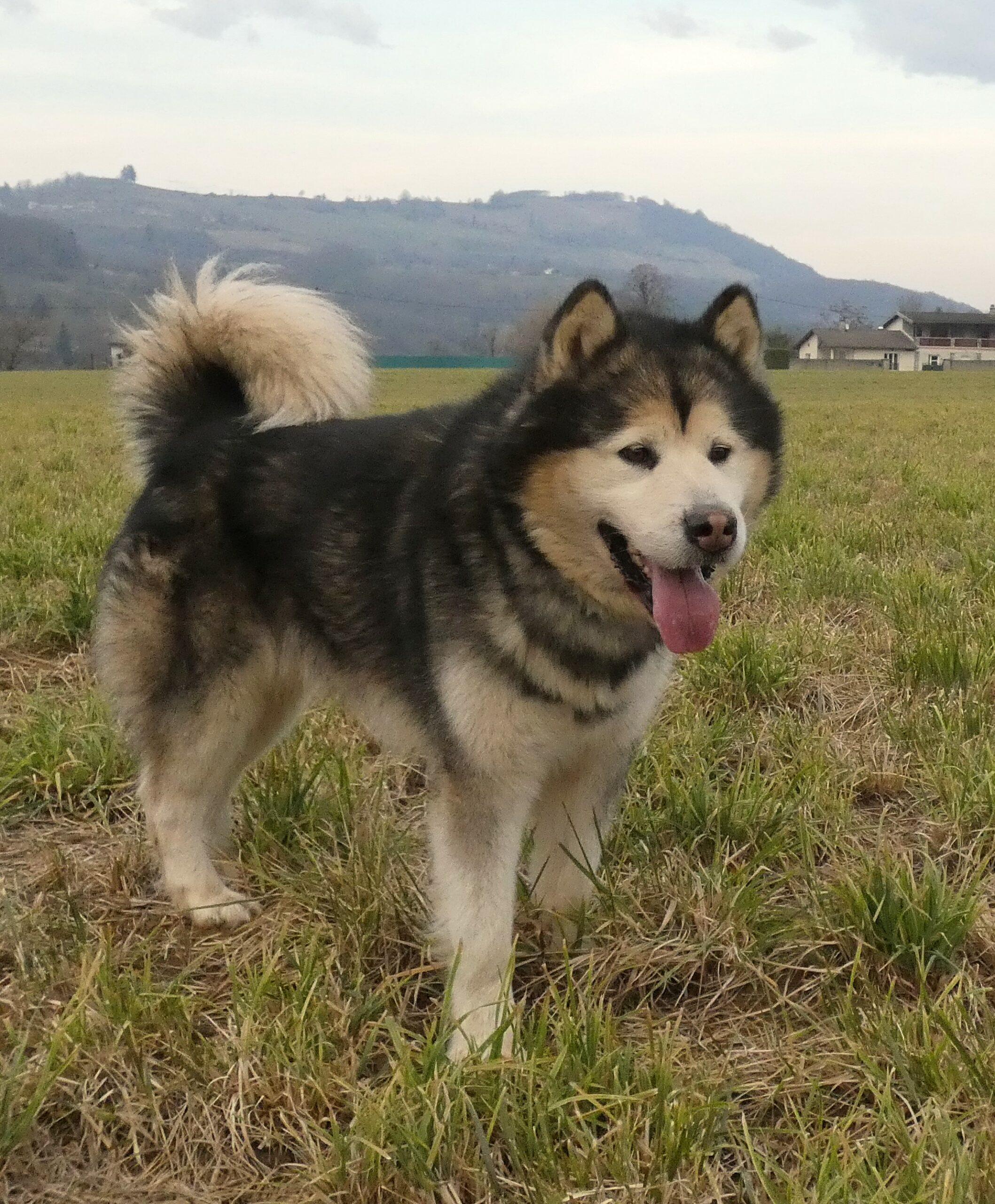 Avec le temps j’ai compris ce qui provoque son comportement bizarre pour un malamute. Il est juste un chien souriant par tout temps et extrêmement heureux de vivre. Tout est un bon motif pour faire la fête. Un véritable régal.